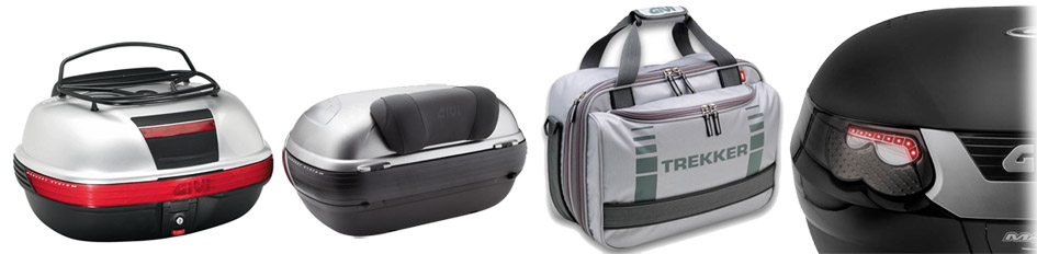 Givi har mye tilleggsutstyr til sine bokser som kan ettermonteres. Det er toppgrinder, bremselys, innertrekk, ryggputer m.m.
