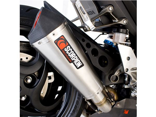 100% made in the UK!Scorpion Slip-On eksos med Serket potte(r) i Titanium. Avtagbar db-killer.