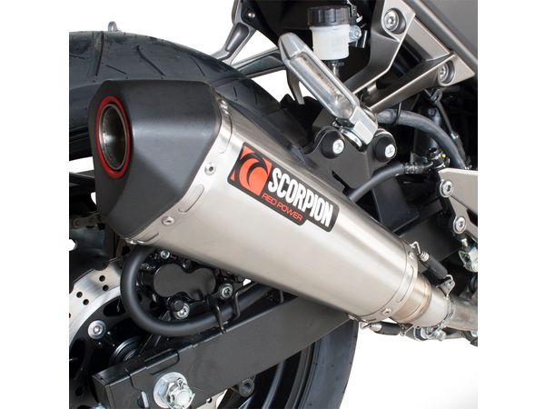 100% made in the UK!Scorpion Slip-On eksos med Serket potte(r) i Titanium. Avtagbar db-killer.