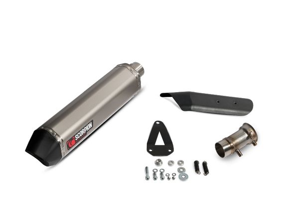 100% made in the UK!Scorpion Slip-On eksos med Serket potte(r) i Titanium. Avtagbar db-killer.