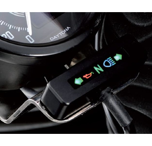 Daytona universal LED indikator cluster med symboler for N, blinklys, olje og fjernlys.Brakett for montering på skrue medfølger