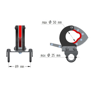 Redskapsholder med hurtiglås.Holderen er i tykk plastikk og bøylen i metall med innlagt gummi for styrke, godt grep og for å minimere skader på redskap.