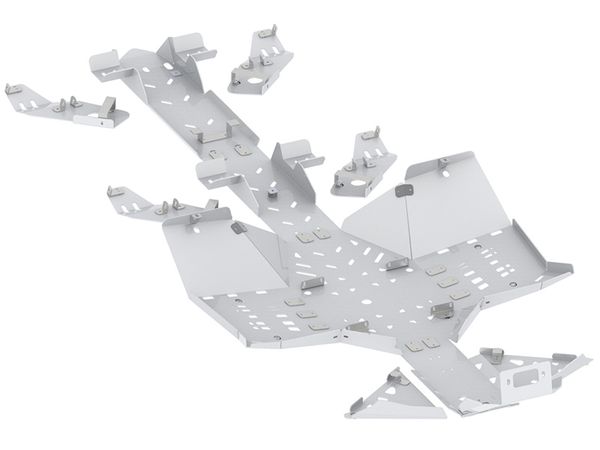 Iron Baltic Bukskjold i AluminiumKomplett bukskjold kit i Aluminium. Beskytter hele undersiden, bærearmene, fotbrettene og nedre del av fronten. Riller og hull i skjoldet for lettere drenering av gjørme, søle og vasking. Skjoldet har også åpninger for oljeskift og vinsj og er tilpasset slik at man kan montere Iron Baltic sitt midtmontert feste for pushtube til brøyteskjær, børste og annet utstyr.