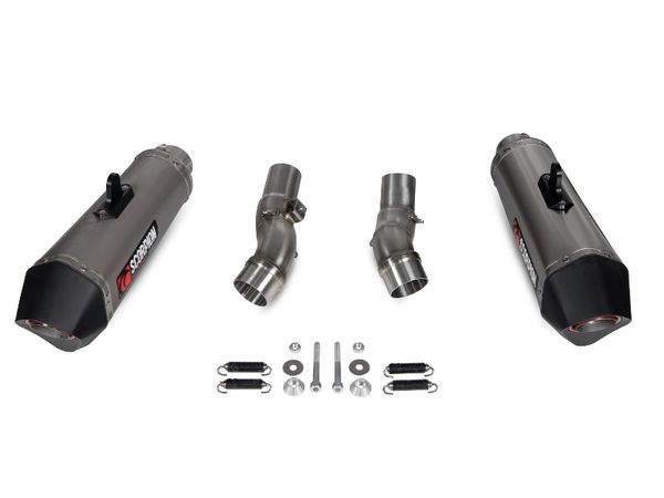 100% made in the UK!Scorpion Slip-On eksos med Serket potte(r) i Titanium. Avtagbar db-killer.