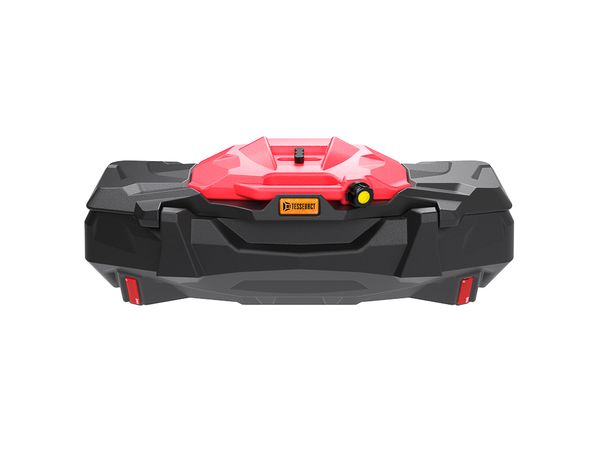 ATV boks for bakmontering.Romslig boks med metall-låser og universalfeste.Spesialtilpasset bensinkanne (rød, sort eller gul) og hurtigfeste til bensinkanne leveres som ekstrautsyr.