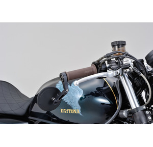 Aluminium D-MIRROR 17E - merket speil i et elegant rundt design for montering i enden av styret.
