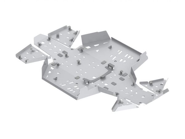 Iron Baltic Bukskjold i AluminiumKomplett bukskjold kit i Aluminium. Beskytter hele undersiden, bærearmene, fotbrettene og nedre del av fronten. Riller og hull i skjoldet for lettere drenering av gjørme, søle og vasking. Skjoldet har også åpninger for oljeskift og vinsj og er tilpasset slik at man kan montere Iron Baltic sitt midtmontert feste for pushtube til brøyteskjær, børste og annet utstyr.