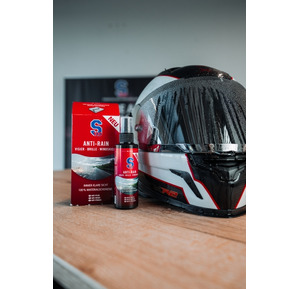 Spray S100 Anti-Rain på utsiden av det rengjorte visiret og fordel med en mikrofiberklut. La det fordampe i ca. ett minutt, og tørk deretter lett over igjen.