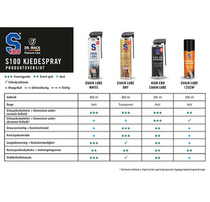 For optimal ytelse anbefales det å rengjøre kjedesettet etter 1 500 km med S100 Kjederens.