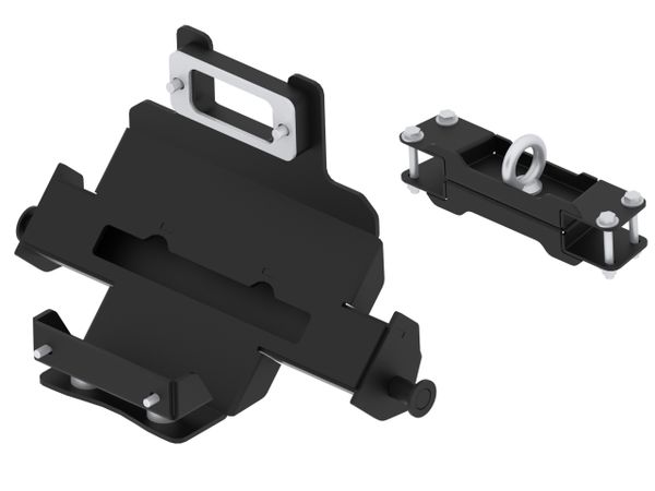Brukes for å feste pushtuben fra frontmonterte ploger, V-ploger, plogskuffer og børster med QuickAttach system. Monteres fremme på kjøretøyet. Fordeler med frontmontert brakett er at man ikke trenger å krype under kjøretøyet for å feste pushtuben og at man kan løfte plogen eller børsten høyere opp.